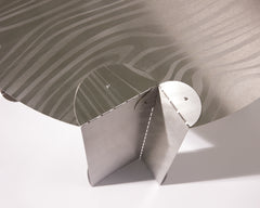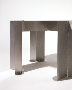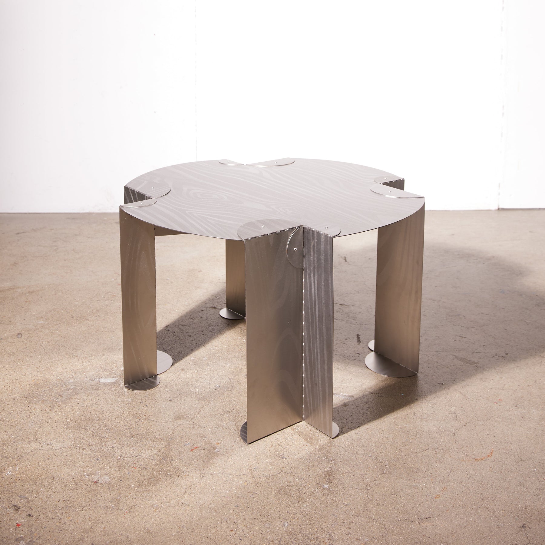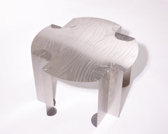 This stainless steel coffee table is inspired by the form and texture of wood. Its design draws from the shape of wooden blocks, while the grain pattern is replicated using sandblasting techniques. The table combines the beauty of nature with modern craftsmanship, blending organic forms and clean geometric lines for a timeless appeal.