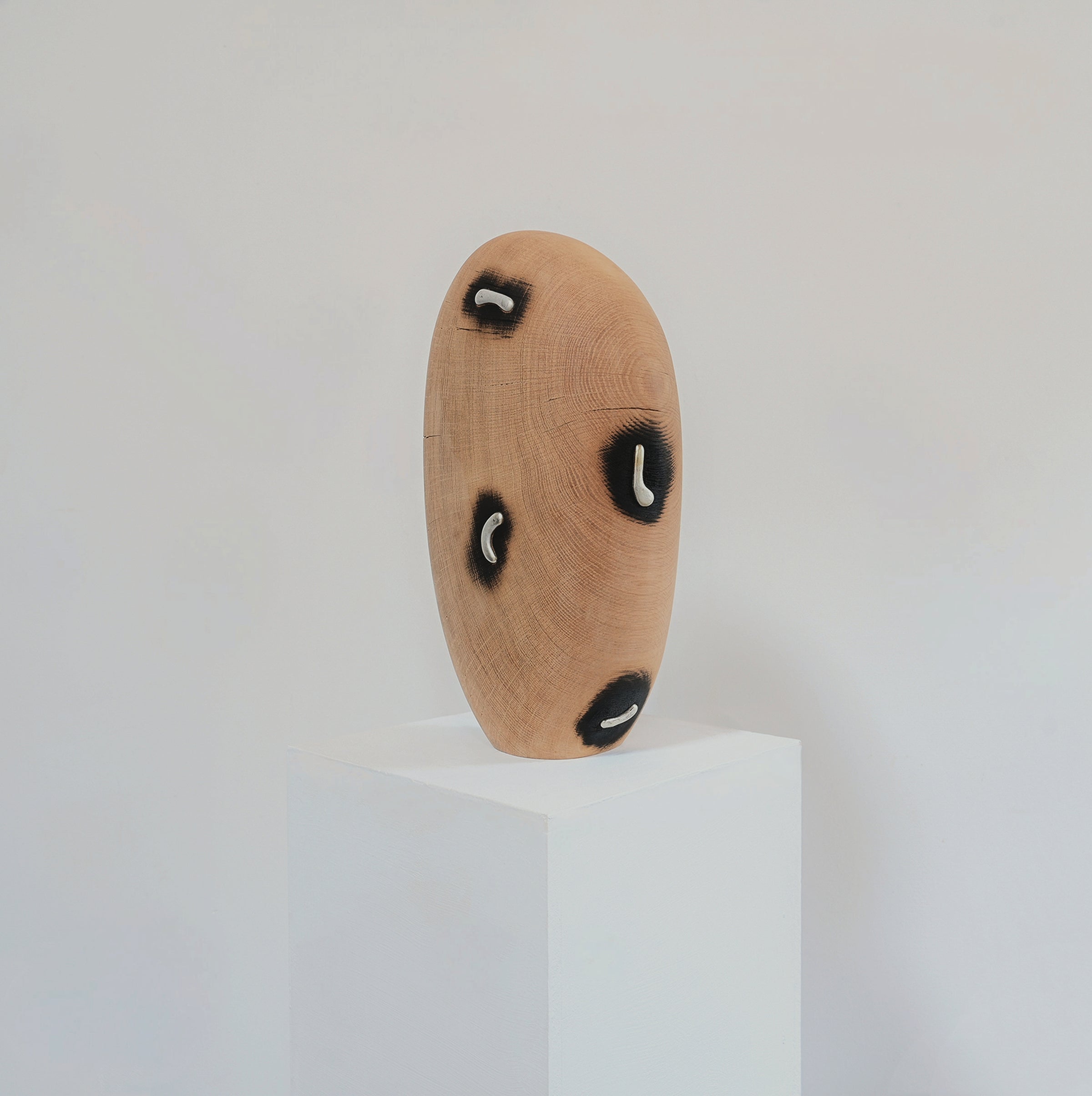 Goldsworthy intricately cast pewter, drawing inspiration from the captivating patterns found in woodworm markings and the trees themselves. Embracing a restrained approach, he highlighted the natural colour of the wood, incorporating subtle charring to enhance its depth and grain. This method fosters a harmonious dialogue between the materials, each evoking its own unique narrative.