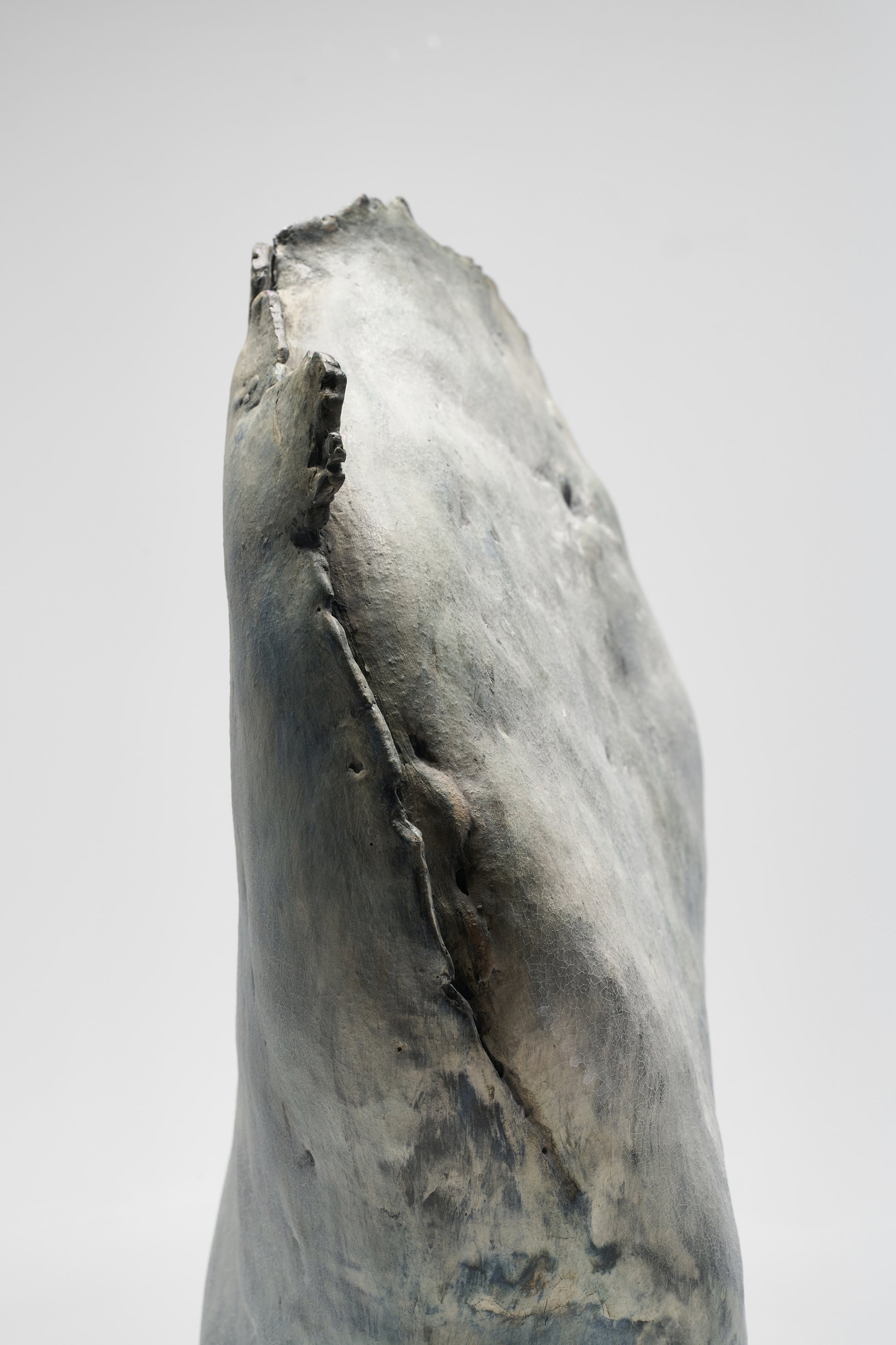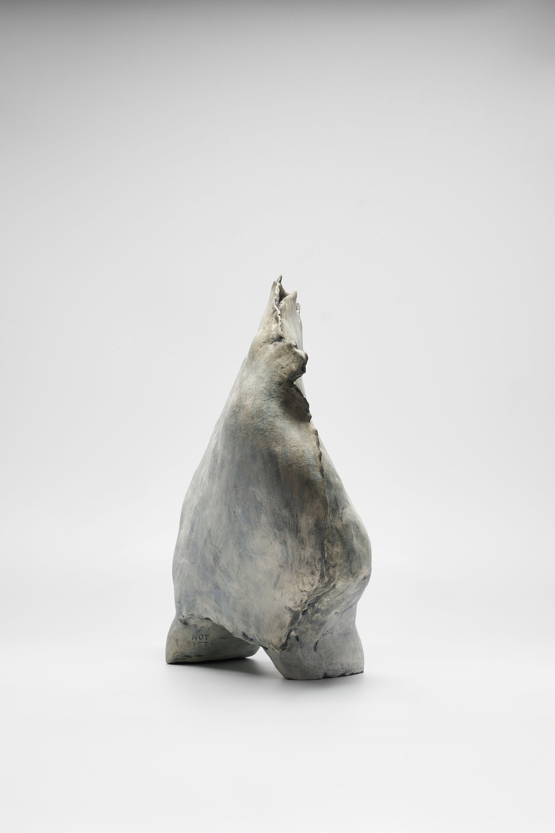 Handbuilt ceramic vessel. Creature-like, with a dense, weathered skin.