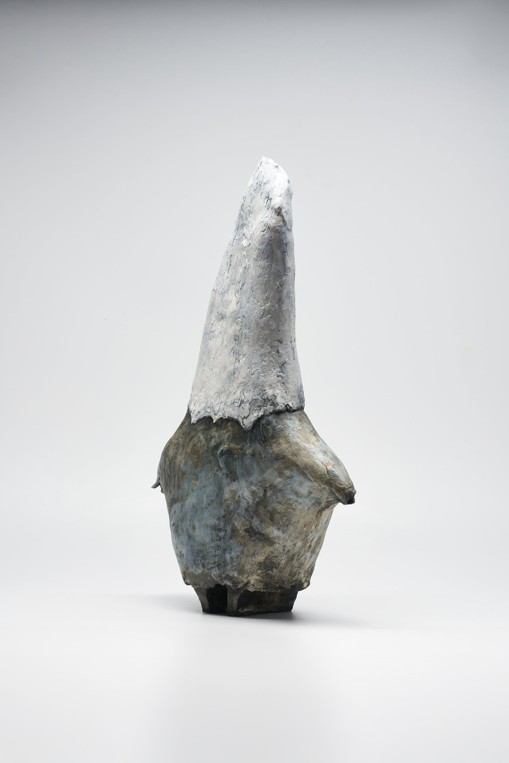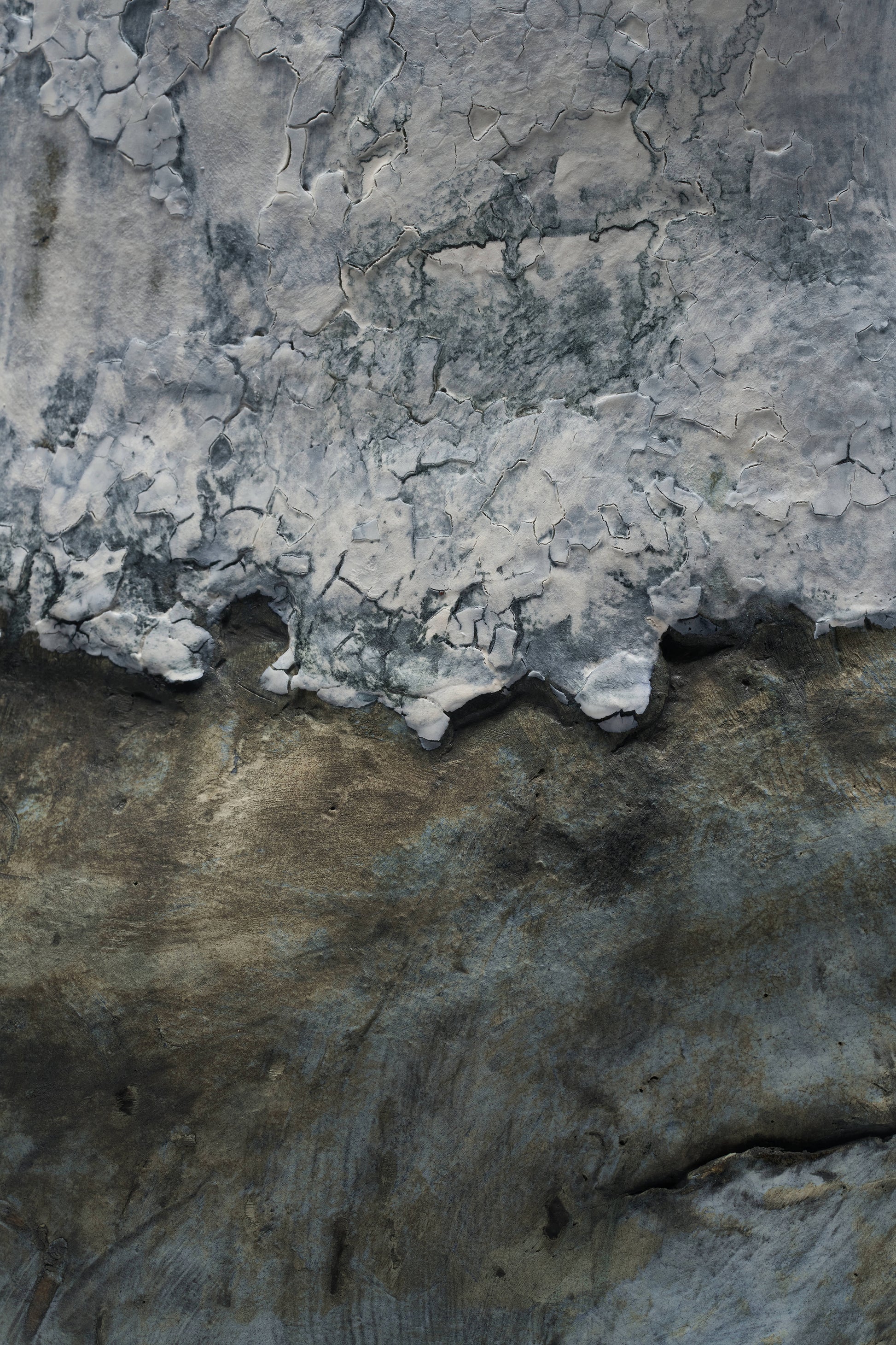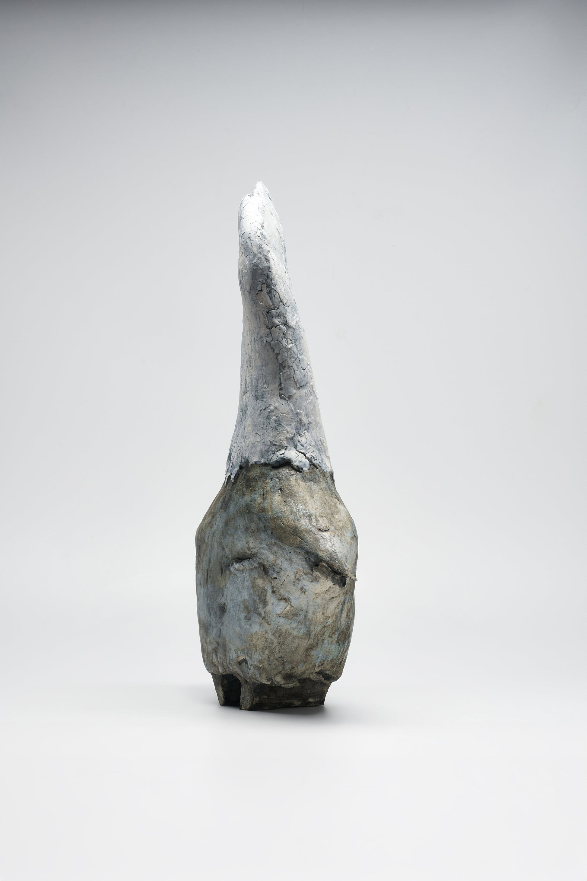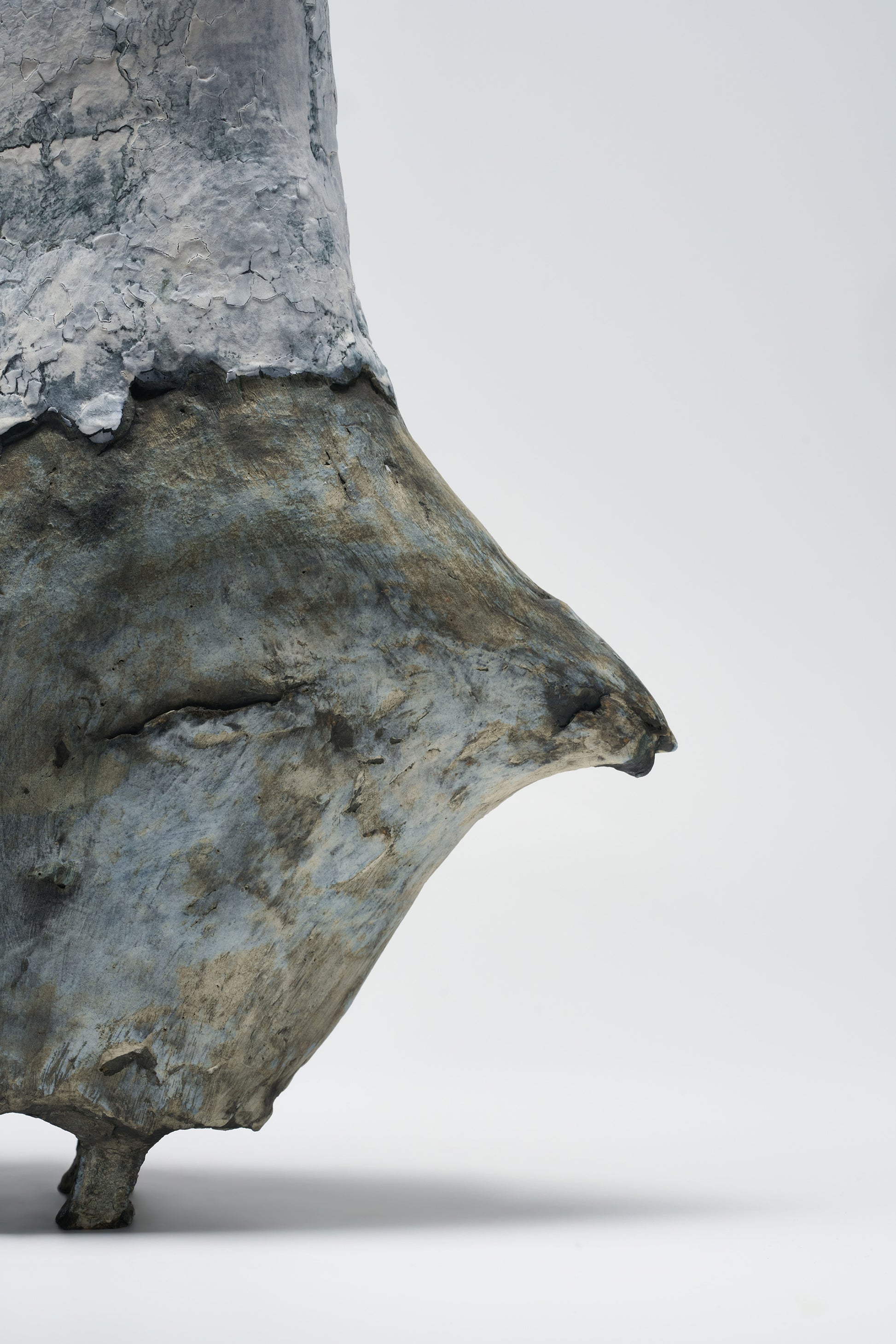 Porcelain and stoneware piece with almost a closed shape. Textured surface built up through slips and oxides