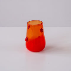 The Red Bobble Tumbler is a vibrant, handblown glass piece by designer-maker Hannah Bax, bringing a playful twist to functional design. Its warm red-orange gradient is accented with sculpted glass bobbles, giving the tumbler both a tactile and visual appeal.